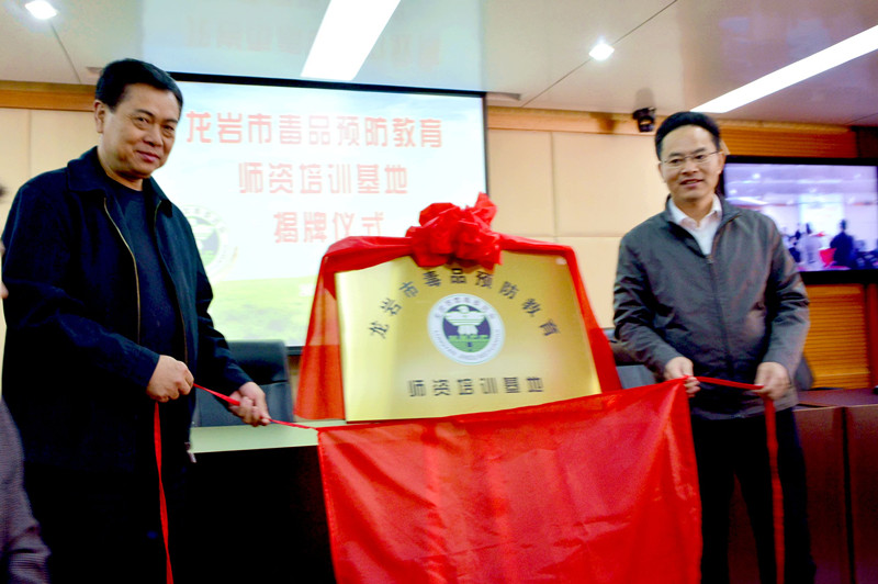 罗初辉、黄德周为龙岩市毒品预防教育师资培训基地揭牌。王莉武发表讲话,她指出此次揭牌对深化龙岩市禁毒宣传教育具有重要意义,希望通过充分发挥培训基地功能和电大远程教育资源优势,提高龙岩市教师队伍业务能力和职业素养,确保做到禁毒知识的普及、青少年抵御毒品能力的增强,实现龙岩市青少年毒品预防教育与科学文化教育、思想道德教育、生命健康教育和法治教育的有机融合,进一步降低毒品的社会危害。