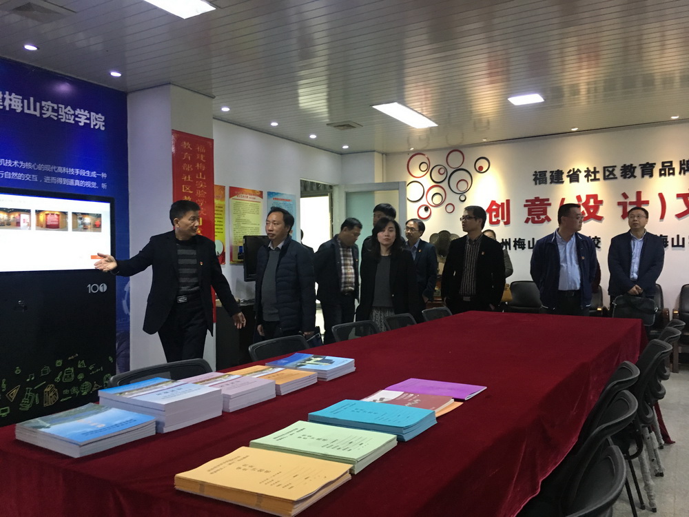 调研组一行参观了学院校园创意馆、VR技术馆,实地考察了培训基地的生活设施、培训场所以及培训资料库。教育部社区教育研究员、电大梅山学院院长李土元向调研组一行汇报了“国务院扶贫办全国贫困村创业致富带头人培训基地”和“泉州市农村党务干部培训基地”创办四年来的发展情况,按照“七个一”的要求建设基地的情况,“1+11”创新培训模式荣获“全国扶贫攻坚创新奖”,培训了全国七个省区各类人才4760多人,成功率达60%以上,取得丰硕的培训成果。李土元表示今后将继续努力真学实干,开展多项目培训,在取得福建社区教育品牌《梅山创业培训讲堂》的基础上再争创“党员创业培训品牌”。