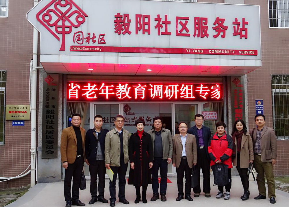 3月14日下午,省教育厅、民政厅、省电大、省老年大学、福州大学等单位领导、专家组成的调研组一行六人,在漳州市教育局和漳州电大有关领导陪同下,莅临漳州市龙文区毅阳社区,对漳州社区大学学习点开展老年教育的情况开展调研。