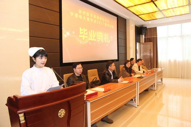 在典礼上,宁德教学点2013级高级护理班的谢凌鸿与霞浦班2013级高级护理班的方梅凤分别代表毕业生发言,畅谈参加学习期间的感想与收获。