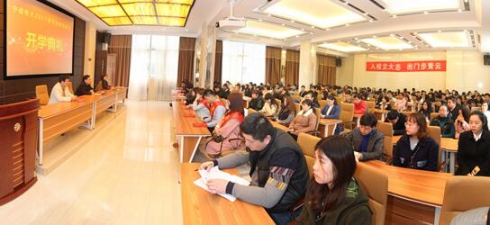 3月26日上午,宁德电大举行2017春开放教育新生开学典礼,市委教育工委副书记、校党委书记、校长叶祖庚出席典礼并做动员讲话。校领导、各处室相关老师、辅导员、近257位新生及荣获2015-2016年度省级优秀学员、优秀学生干部参加典礼。副书记陈丽银主持典礼。