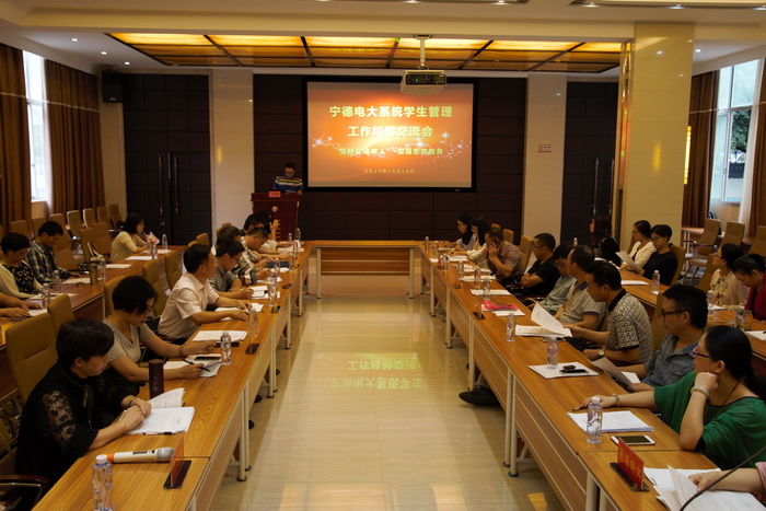 2017年10月18日,宁德电大系统学生管理工作经验交流会在宁德电大演播厅召开。各县(市、区)电大学院、工作站的分管领导、学生管理部门负责人、辅导员代表及分校学生管理工作负责人和全体专兼职辅导员共30多人参加会议。会议由宁德电大党委副书记陈丽银主持。会上宁德市电大、各县(市区)优秀辅导员作了经验交流。