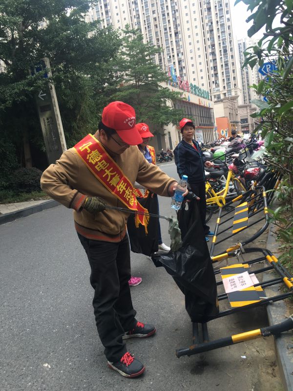本次青年志愿者活动以“环境卫生”为主题,宁德电大负责万达华尔街,万达C、D区、区间路上的卫生环境,四名青年教师穿戴整齐统一,一手持清理工具,一手持垃圾袋,不放过任何一个隐蔽角落里的垃圾和烟头,积极并认真地清理街边道路的垃圾,为居民社区营造干净整洁的生活环境。