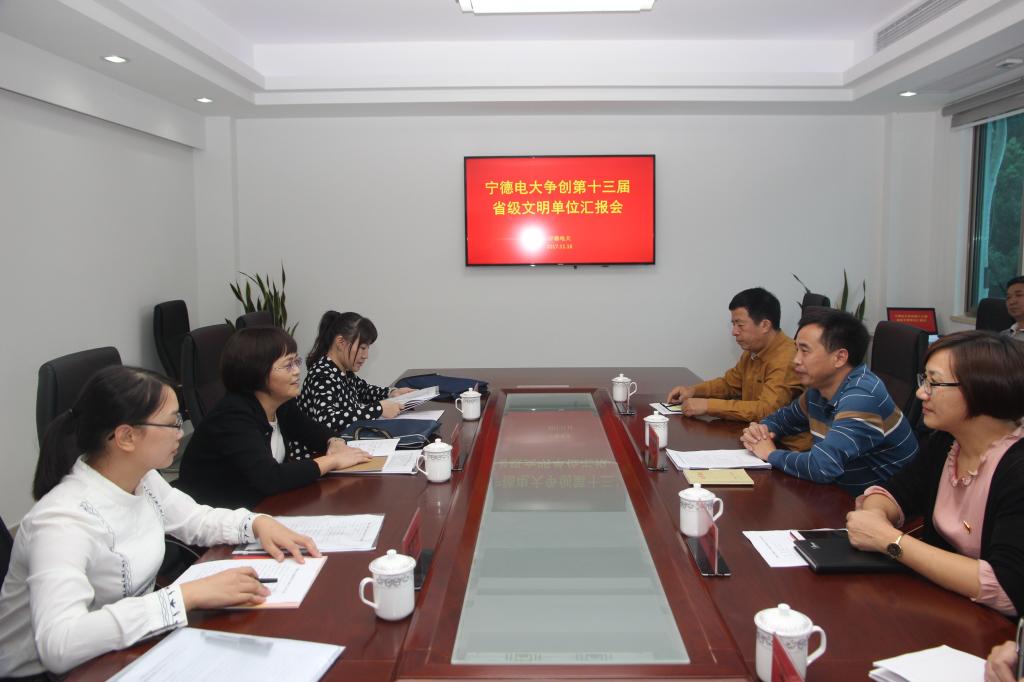 2017年11月16日下午,福建省级文明单位考评组到宁德电大开展创建第十三届省级文明单位总评验收。