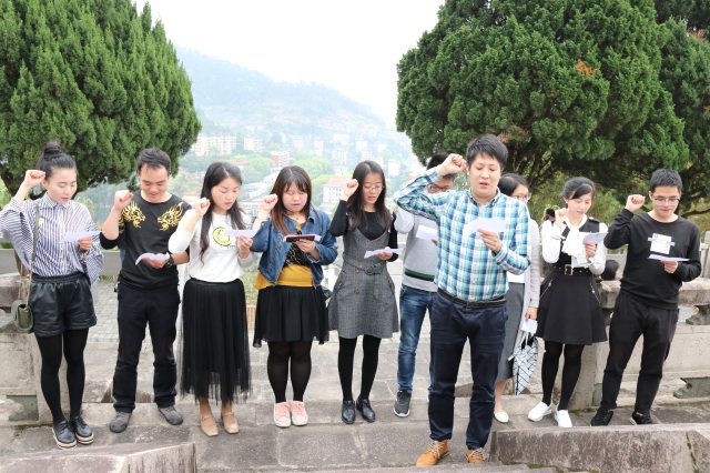 在宁德革命烈士纪念碑下,全体青年教师举起右手,庄严宣读誓词:“我宣誓:我志愿做一名光荣的人民教师,忠于人民的教育事业,……为人民的教育事业奉献一切”。宣誓结束后,由教师代表为革命先烈敬献素色鲜花,缅怀革命先烈。
