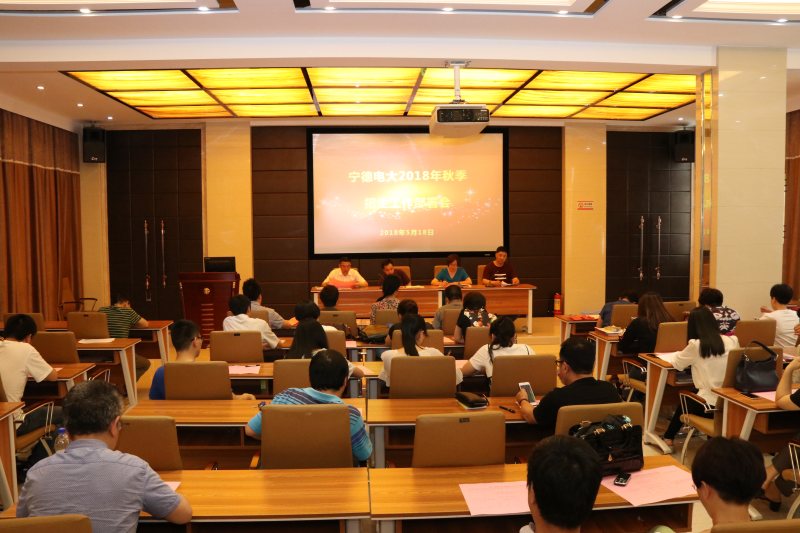 宁德电大2018年秋季招生工作部署会5月18日在宁德召开,宁德电大党委书记、校长叶祖庚,党委副书记陈丽银,副校长王晓飚及全体教职工参加会议。陈丽银主持会议。