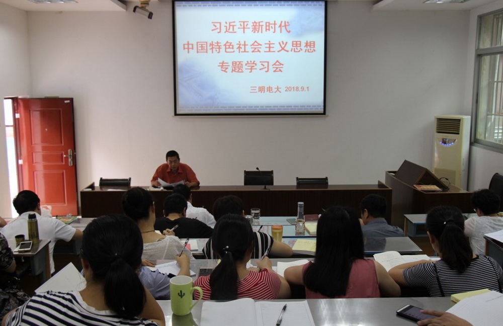 为进一步加强教职工政治理论学习,提高教师思想政治素质,促进教师全面发展,在全校进一步兴起习近平新时代中国特色社会主义思想“大学习”热潮,9月1日下午,三明电大党总支组织全校教职员工集中学习习近平新时代中国特色社会主义思想宣讲提纲。邓小和副校长主持学习会。