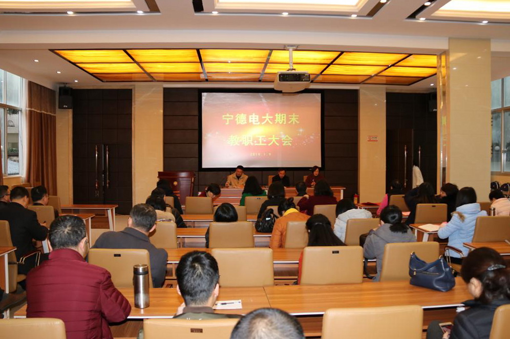2019年1月9日,宁德电大召开期末教职工大会,全面总结学校2018年工作,部署寒假招生、培训拓展等工作。宁德电大党委书记、校长叶祖庚,党委副书记陈丽银,副校长王晓飚及全体教职工参加会议,会议由陈丽银主持。