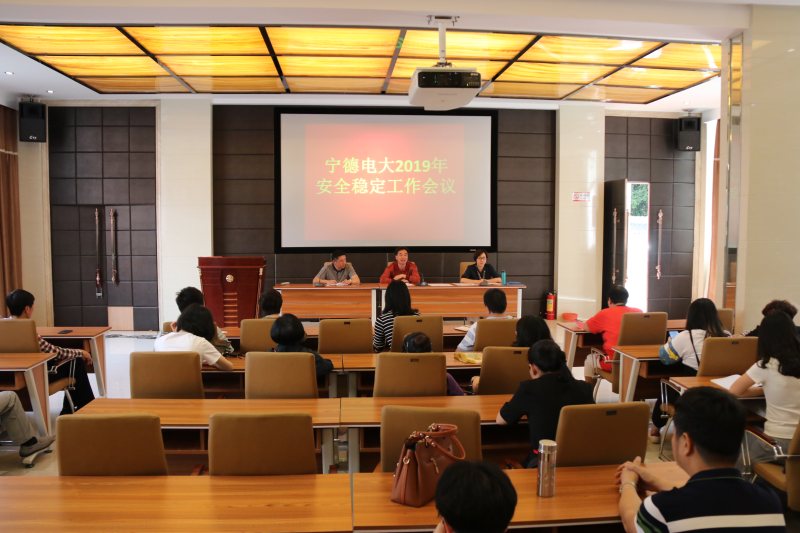5月30日下午,宁德电大召开2019年安全稳定工作会议,党委书记、校长叶祖庚,党委副书记陈丽银,副校长王晓飚及全体教职工参加了会议,会议由陈丽银主持。