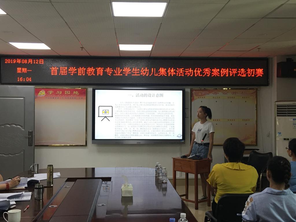 8月12日下午,南安电大学院举行学前教育专业学生幼儿集体活动优秀案例评选初赛(说课环节)活动,泉州电大林春成副校长、教务处傅伶澜主任、李红萍副主任担任活动评委,南安电大全体行政人员、学前教育专业四位专业管理员和八位选拔出来的学员参加了此次活动。