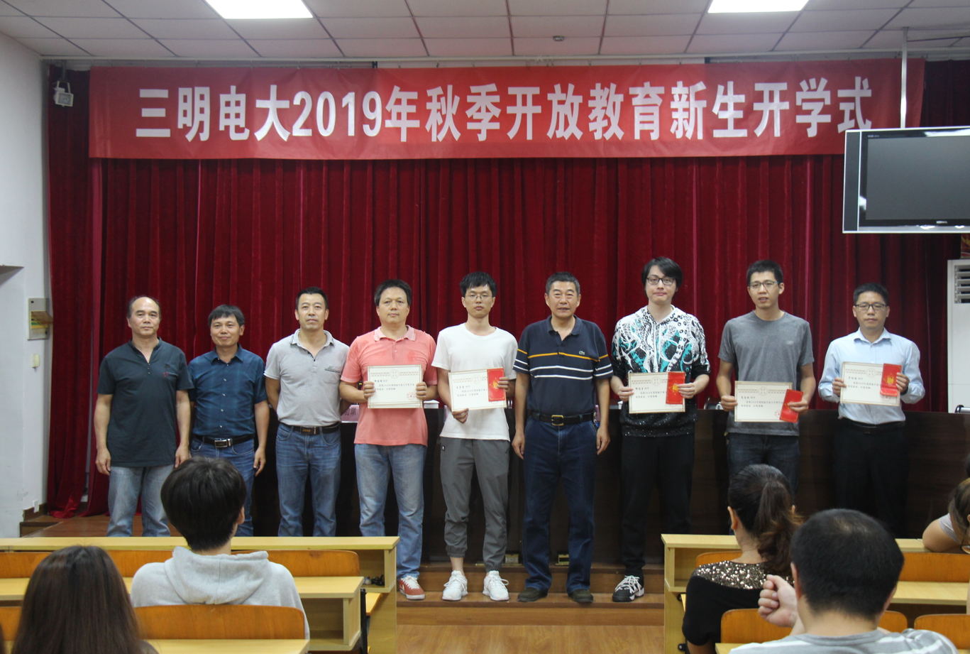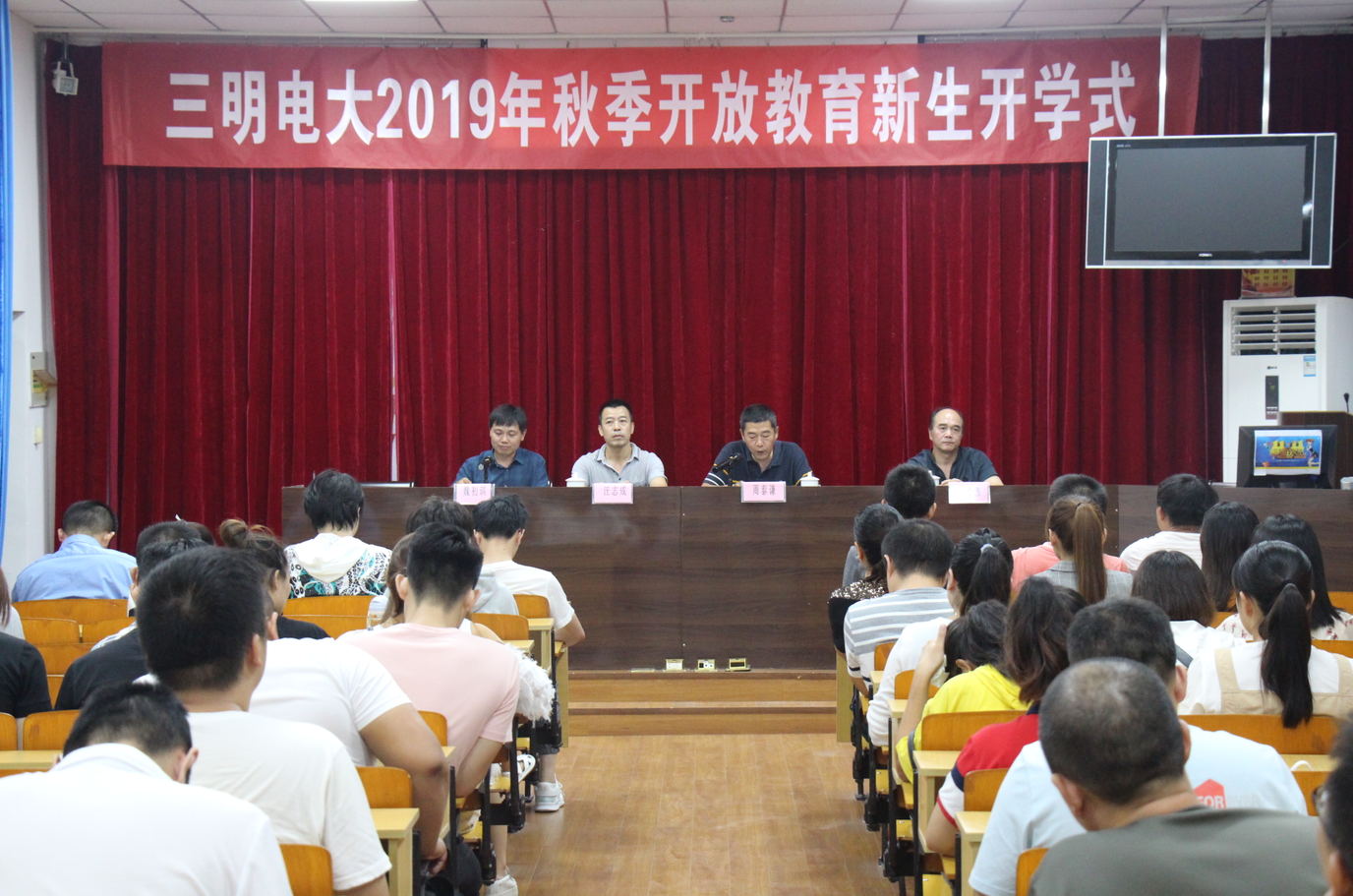 10月13日晚上,三明电大举行2019年秋季开放教育新生开学式,校领导、有关处室负责人、开放教育新生各专业班主任以及100多名本、专科新生参加了开学式。