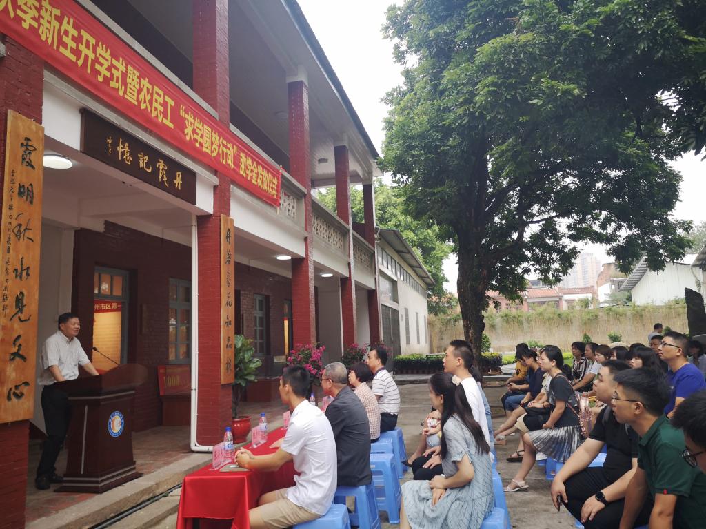 10月13日上午,漳州电大2019年秋季开放教育新生开学式暨农民工“求学圆梦行动”助学金发放仪式在“丹霞记忆”馆前举行。校领导、教务处、学生处有关老师、部分优秀校友代表及2019年秋季开放教育全体新生参加。学校党委书记、校长李然出席并讲话,副书记林之枫主持。