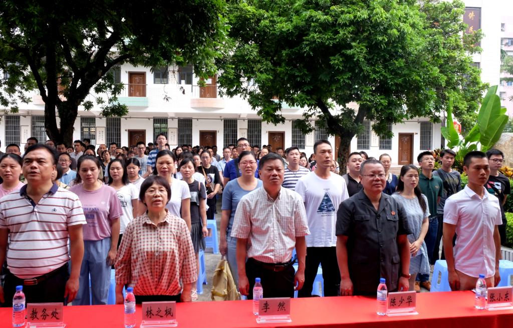 开学仪式在庄严的国歌声中拉开帷幕。李然代表学校对新同学的到来表示热烈的欢迎。他介绍,漳州电大所在的这一片土地是清代“丹霞书院”旧址,也是漳州新学发祥地,历经汀漳龙师范传习所、省立第二师范学校、龙溪师范学校,直至目前的漳州电大,文脉绵延,英才辈出。在“丹霞记忆”馆前举行新学期开学仪式,为的是以前人的精神力量来激励师生们不忘初心,接续奋斗,创造无愧于时代的灿烂人生。他以电大优秀校友——新中国成立70周年“最美奋斗者”黄志丽,“全国模范法官”“CCTV2018年年度法治人物”陈少华,入围“中国好人榜”的90后“军姿交警”张小东为例,勉励全体新生树立信心,积极融入,科学处理工学矛盾,利用电大开放教育这个学习和交流的平台,学好专业知识,努力在各自岗位上实现个人的成长、成才、成功。