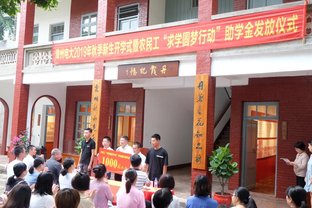 会上还举行了“农民工求学圆梦行动”学历提升计划助学金发放仪式。今年我校共有符合条件的68位学生获得资助,每人每年1000元。