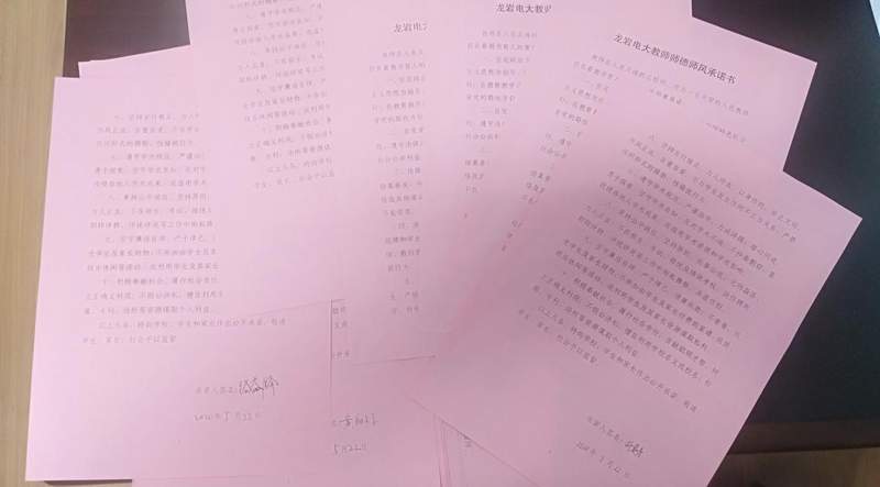 会上,全校教职工观看了《全国教育系统优秀师德师风代表——经济学大师胡乃武及文学教授黄尚军》等3个微视频。教务处副主任严有日领读《龙岩电大教师师德师风承诺书》并作表态发言,组织全校教职工签订《龙岩电大教师师德师风承诺书》。教务处主任陈晓平就5月30日计算机应用基础(本科)考试的组织实施和疫情防控相关工作作了安排部署,要求全体班主任务必提高防疫意识,及时跟踪考生考前健康情况,认真做好考生考风考纪诚信教育和考试诚信承诺书签订工作。