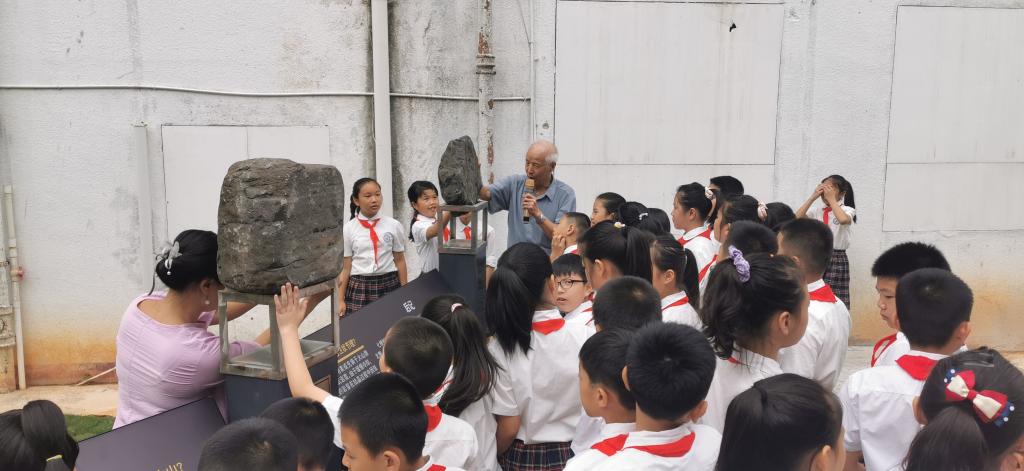 曾问渠教授给孩子们介绍火山石