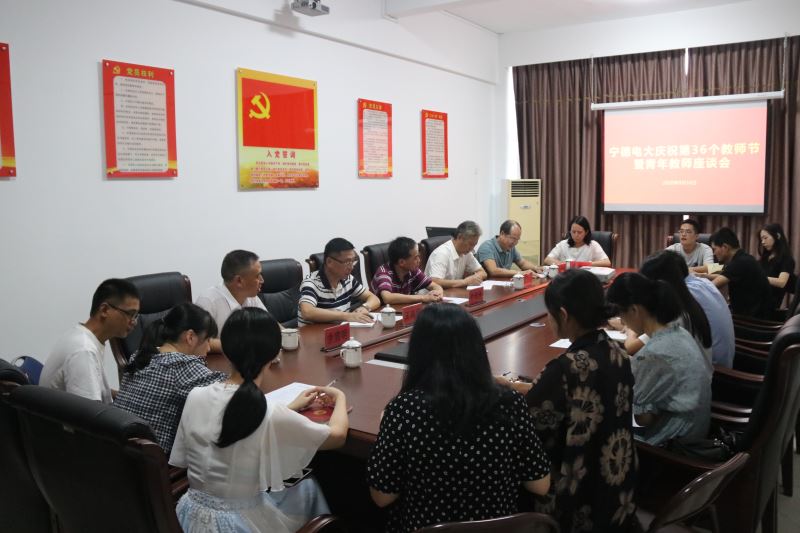 为庆祝第36个教师节,9月10日下午,宁德电大召开庆祝第36个教师节暨青年教师座谈会,学校党委书记、校长叶祖庚,副校长林承毅,副校长王晓飚,及全体35周岁以下青年教师参加座谈会。校党委副书记李健平主持座谈会。