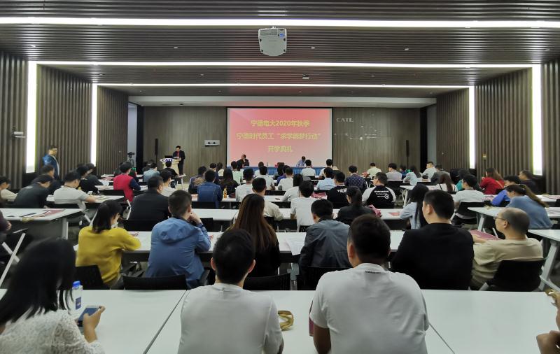 10月24日下午,宁德电大2020年秋季宁德时代员工“求学圆梦行动”开学典礼在宁德时代公司举行。宁德电大党委书记、校长叶祖庚,宁德时代工会主席詹书知,宁德时代工会与宁德电大相关负责人,宁德时代新学员等100余人参加典礼。宁德电大党委副书记李健平主持典礼。