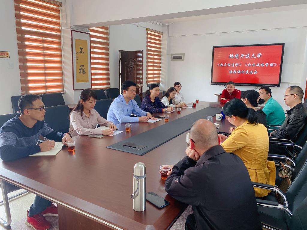 3月19日下午,福建开放大学经管系负责人王芳、茶产业研究所副所长王正环及龙岩分校、邵武分校有关老师一行六人到漳州电大调研《西方经济学》《企业战略管理》课程和茶专业招生办学情况。党委书记、校长李然,教学部门负责人及相关课程团队成员参加了调研座谈会。