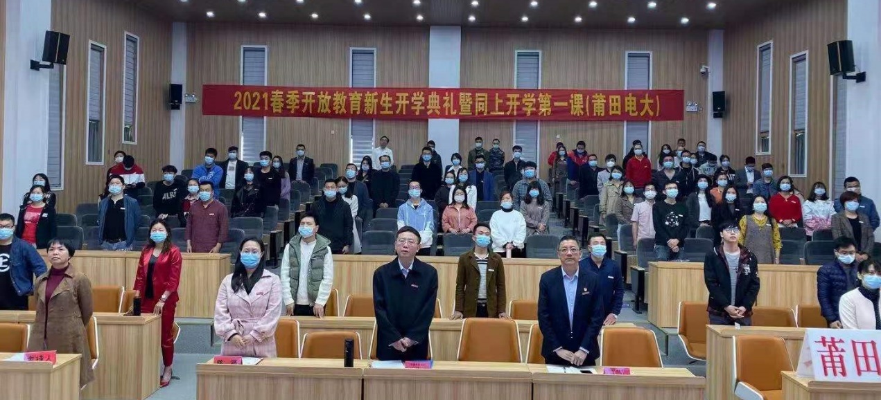 4月10日上午,莆田电大2021年春季新生开学典礼在嘹亮雄壮的国歌声中正式启幕。此次开学典礼福建开放教育办学系统全省联动,并同上“开学第一课”。活动采用主会场与分会场、线上与线下全省联动的方式进行,主、分会场通过双向视频互联互通,并向师生和社会在线实况直播。