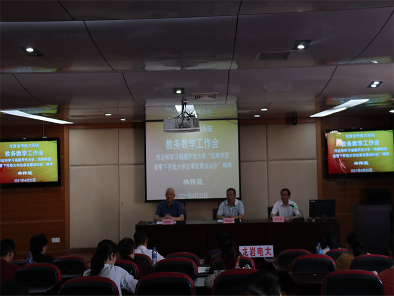 4月23日,龙岩电大召开全市电大系统教务教学工作会议,会议由副校长饶生来主持。党支部书记林伟能,校本部及各县(市、区)工作站教务教学分管领导、部门负责人和工作人员30多人参加会议。