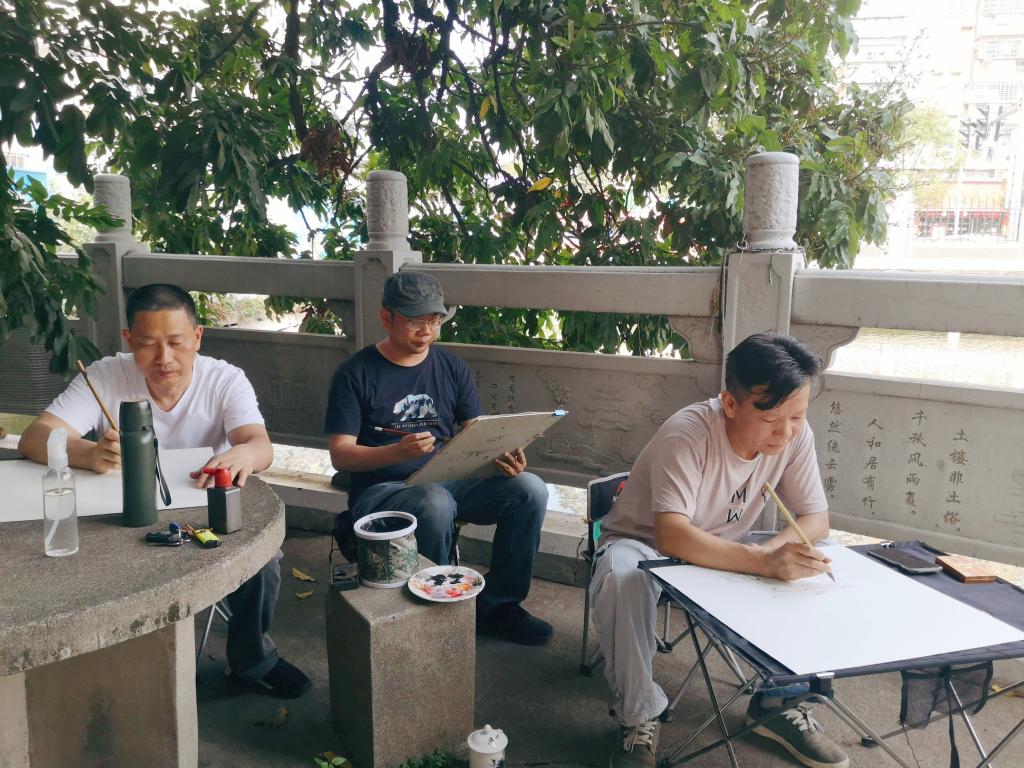 书画家们先后参观了“古桥”“古潭”“古井”“古树”以及“丹霞记忆”馆、七棵树科普园和校史馆。其中,校园中的“丹霞书院”史迹是我省涉及清代传承至今的珍贵教育文物史迹,具有很高的历史、科学和艺术等价值。艺术家们用自己手中的画笔把跨越300多年历史的“丹霞书院史迹”留在画作上,以实际行动呼吁和倡导传承优秀传统文化、珍惜文化遗产的人文情怀。