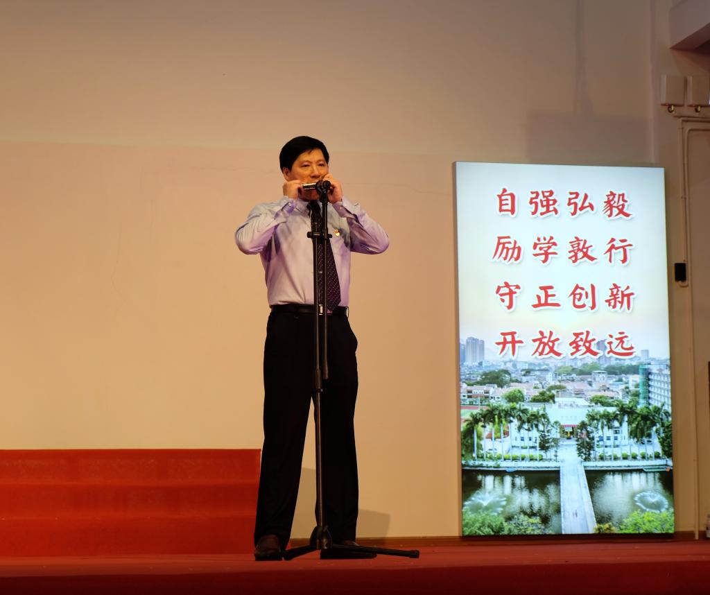 福建开放大学两个直属支部的党员,我校党委领导班子、全体教职工,离退休老领导、老教师,优秀校友代表,近几年获得国开奖学金的学生代表,2021年春季入学的开放教育本、专科学生,漳州市老年开放(互联网)大学学员代表及部分社区居民欢聚一堂,共飨文化盛宴。