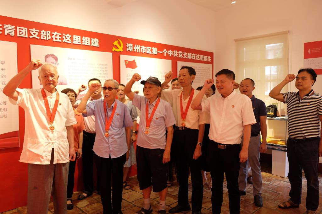 会后,参会人员在“丹霞记忆馆”重温入党誓词并合影留念。