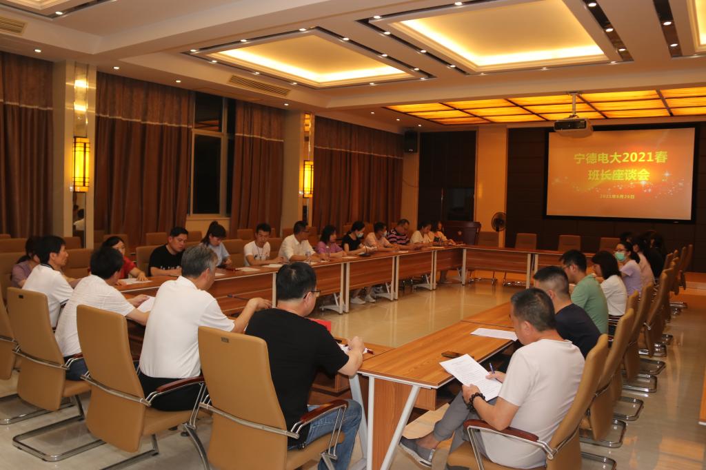 为了树信心,提能力,培养合格的应用型人才,2021年6月26日晚,宁德电大举办开放教育学生班长座谈会。宁德电大党委书记、校长叶祖庚出席座谈会并讲话,学生工作处、教务处、教学处负责人及学生班长共30余人参加座谈会。林承毅副校长主持座谈会。