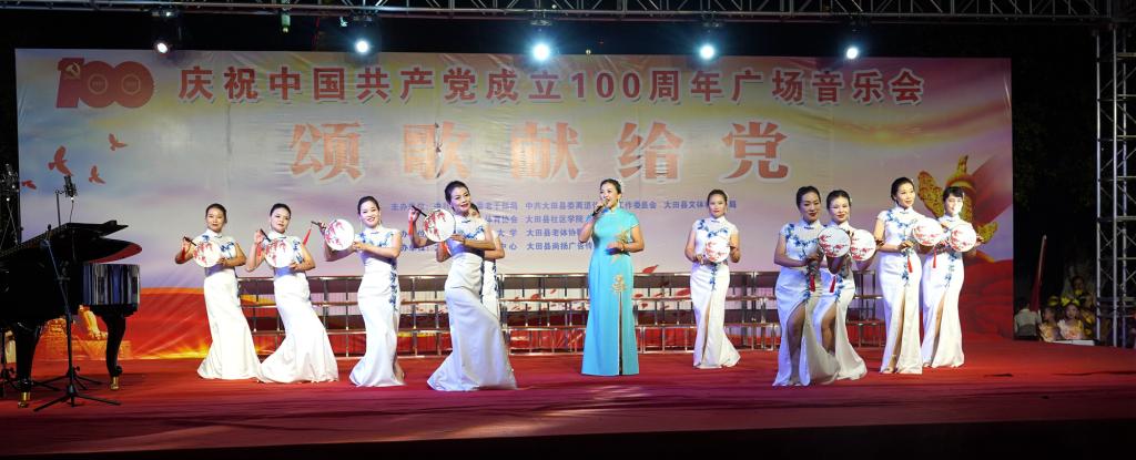 为庆祝中国共产党成立100周年,丰富广大社区居民的精神文化生活,6月27日晚,由大田县委老干部局、文旅局、社区学院、老体协等单位联合举办的“颂歌献给党”广场音乐会在白岩公园举行。