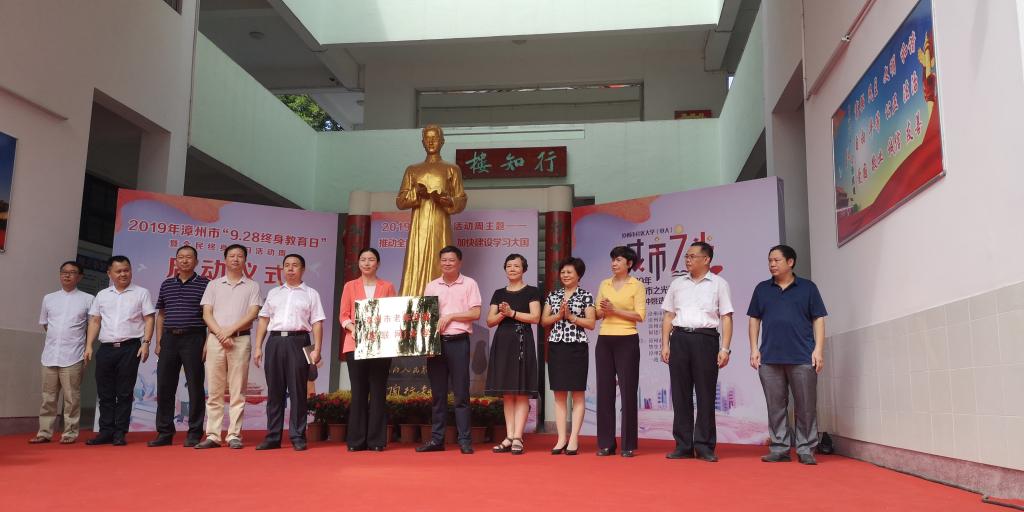 2018年起,连续三年的漳州市“9.28终身教育活动日”暨全民终身学习活动周启动仪式均在我校举行。我校依托“丹霞读书会”组织开展了“城市微光”换书大会、“敬读行知.悦读阅美”诗歌朗诵会、“学党史,诵经典”经典诵读等主题阅读活动,积极做好“4.23世界读书日”“9.28终身教育活动日”等重要时间节点宣传工作,办好我市各类读书节,努力形成常态化的群众文化节日。我们还走出去,进社区,“校内+校外”推进“百课进社区”活动,提升社会公众参与度和阅读品牌号召力,营造全民学习氛围,积极推进“互联网+终身教育”,引导各界群众广泛参与终身学习。