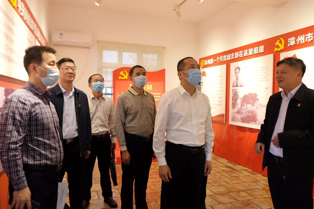 11月12日,漳州市委常委、秘书长廖卓文到漳州开放大学调研红色文化展馆。