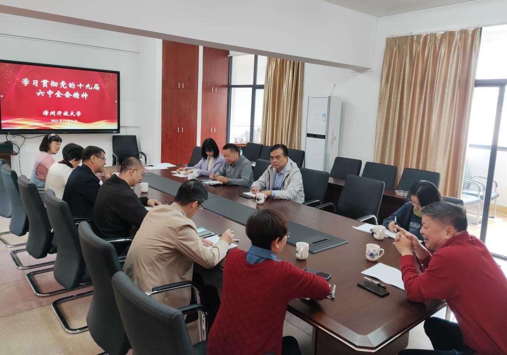 11月16日上午,漳州开放大学召开党委理论学习中心组(扩大)会议,学习贯彻党的十九届六中全会精神。漳州开放大学党委书记、校长李然主持会议,中心组全体成员参加,相关科室人员列席。