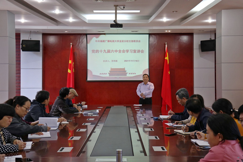 11月18日,龙岩电大党支部书记林伟能为全校教职员工带来了一场有理论、接地气、有温度的“深入学习宣传贯彻党的十九届六中全会精神”宣讲报告会。