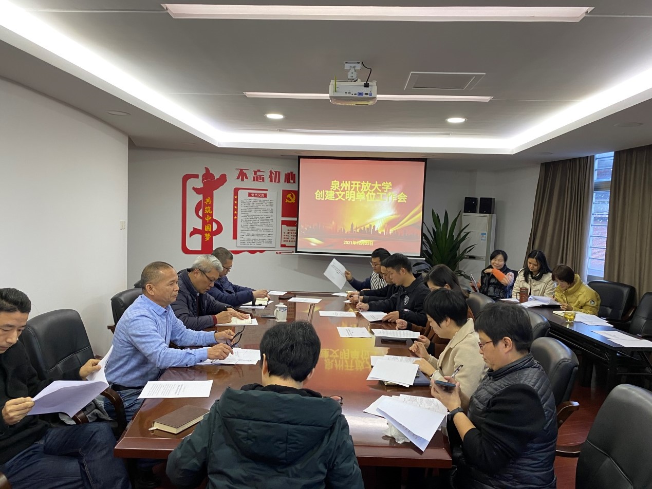 12月23日,为深入推进文明单位创建活动,泉州开放大学召开文明单位创建专题工作会,对创城工作和创建文明单位工作进行深入动员部署。泉州开放大学精神文明创建领导组成员和相关科室人员参加会议,会议由办公室主任蔡金铭主持。