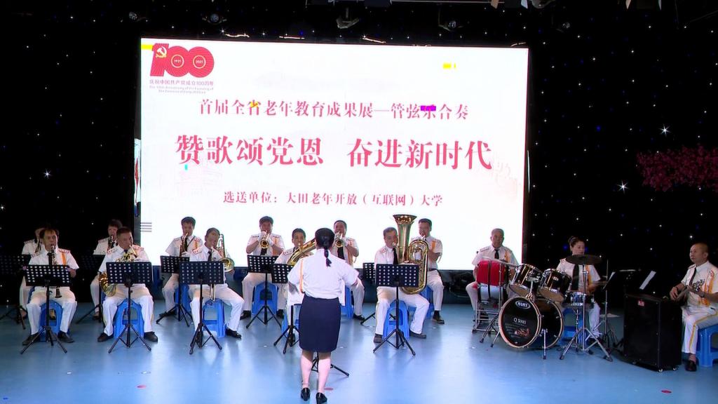 三、管弦乐作品《赞歌颂党恩奋进新时代》获首届全国老年教育教学成果展器乐类二等奖。该作品由大田老年开放(互联网)大学选送,由县社区学院(电大)管弦乐团演奏。