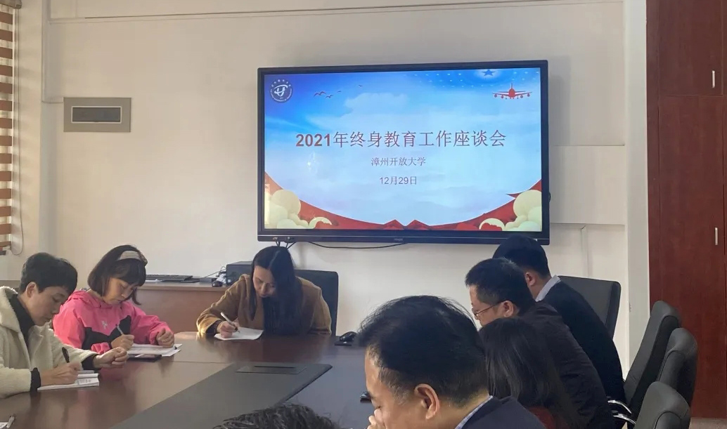 12月30日下午,漳州开放大学举行2021年终身教育工作座谈会,漳州开放大学党委书记、校长李然,副书记林之枫,各科室负责人及从事和参与学校社区教育工作的相关人员参加了座谈会。