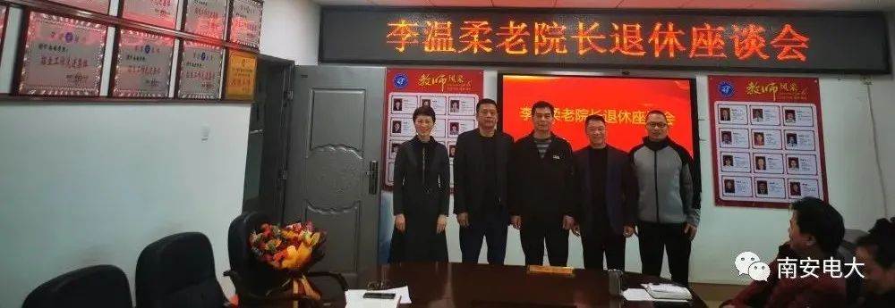 1月5日下午,南安电大在五楼会议室召开李温柔老院长退休座谈会。全体教职员工参加了座谈会,南安电大书记尤春生主持,院长陈宗辉为老院长颁发“退休光荣”牌匾。