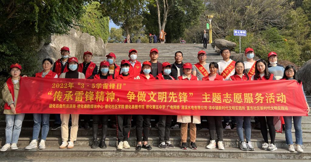 为弘扬中华民族传统美德,推动学雷锋活动的深入开展,3月4日,德化社区学院联合德化县自然资源局、德化县融媒体中心、德化县图书馆、德化第五中学、广电网络、涌溪水电有限公司在驾云亭公园开展“传承雷锋精神,争做文明先锋”主题志愿服务活动。