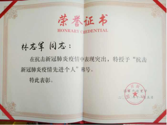 在疫情封闭管理期间,作为云峰村的带头人,林志军就带领全村党员、团员、退役军人,成立了党员志愿服务队、青年志愿者宣传队、退役军人巡查队等队伍,一起参加巡查、宣传等工作;为保障村民正常生活,林志军自建微信群,村民和返乡家属每天只需在微信群上报所需购买的生活用品,他都会帮忙代购,保障他们的生活,开车从云峰村到永春城关,即便是熟悉山路的林志军也要耗时40分钟,每天清晨6点,他就得出门采购,送完物资,一般要到中午11点,2020年春至今,他为大家代购包括蔬菜、油、盐、米等生活必须品,和部分常用药品,以及婴儿奶粉、纸尿裤等3大类25种共计3万余元;林志军还自掏腰包捐赠口罩2000个,隔离防护衣300套,并发动乡贤捐钱捐物;2020年11月,林志军被国家开放大学评为“抗击新冠肺炎疫情先进个人”、泉州市评为疫情防控阻击战工作先进个人。在林志军的牵头组织下,该村组建“群众调解队”,由各角落自然村有威望、办事公道的人心的“老事大”担任调解员,及时化解邻里小矛盾小纠纷,避免拖延成大矛盾大纠纷。