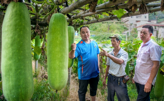 林志军(左一)指导本村瓜农冬瓜如何种植、深加工