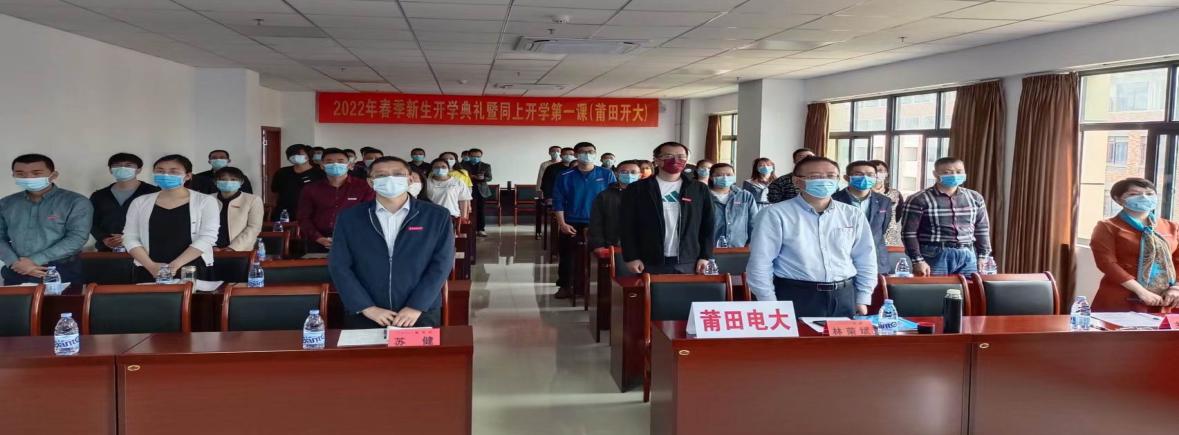 2022年春季新生开学典礼,是莆田开放大学搬迁到新校区后的一件大事,学校精心组织,按疫情防控要求落实相关防疫措施,到场参会师生全程佩戴口罩,未到场师生通过线上收看同步直播。