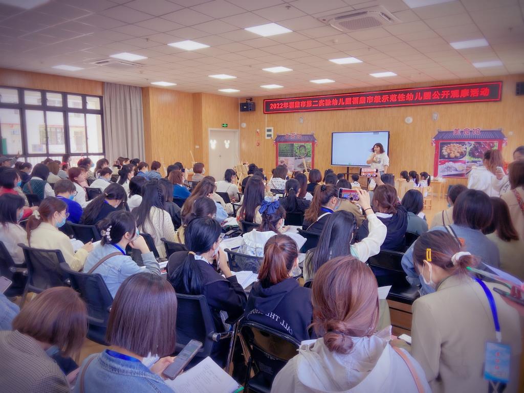 随后,福鼎市第二实验幼儿园的韦曼莹和兰丽娜两位老师,分别带来《扫码福鼎(社会文化)》和《会魔术的快乐水(欣赏活动)》的公开课,精彩的课堂体现出以游戏为主,动静相结合的教学理念,学生们受益匪浅。