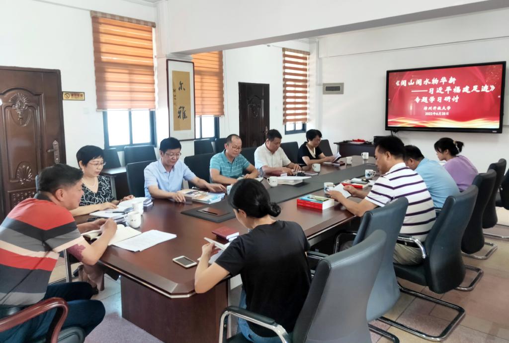 会议要求,全体党员要用心用情感悟《闽山闽水物华新——习近平福建足迹》一书蕴含的重要思想,学有所思、学有所悟、学以致用,切实把学习成效转化为工作实效,结合“三提三效”行动部署,推动学校工作不断取得新进展新成效,努力开创漳州开放大学新格局,以优异的成绩迎接党的二十大胜利召开。