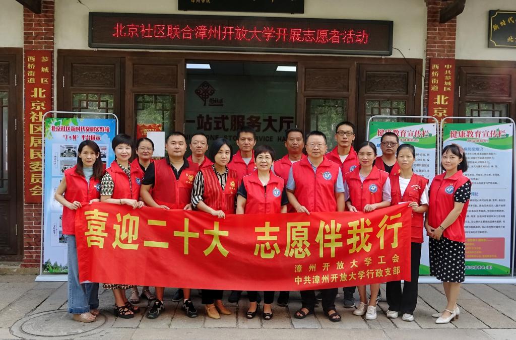9月29日上午,漳州开放大学工会与行政党支部组织党员志愿者走进北京社区,联合开展主题党日活动。学校党委副书记、工会主席林之枫,行政支部书记、工会副主席黄志军带队,西桥街道组织委员沈文兰、北京社区书记沈晓德参加座谈。