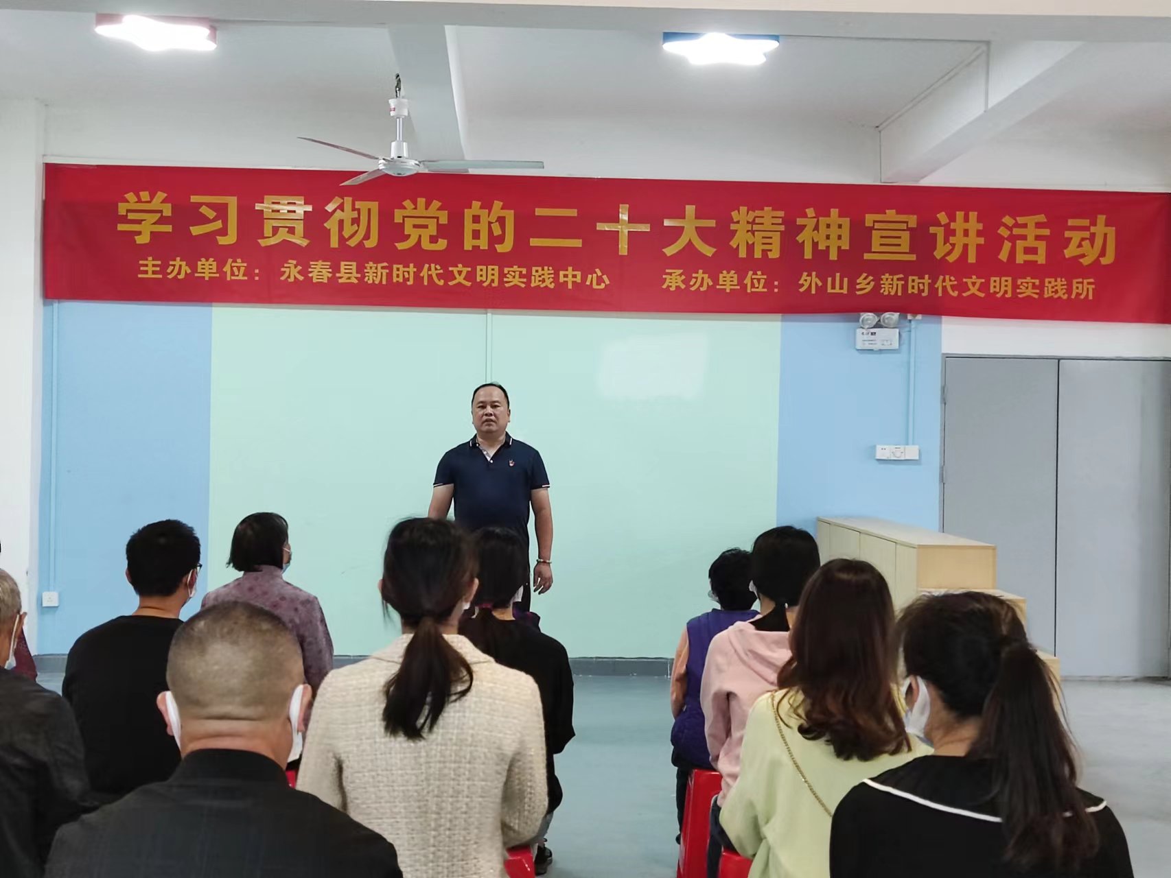 10月31日,永春电大2022年春季本科2班班长,第七届福建省道德模范,永春县外山乡云峰村党支部书记、村委会主任林志军走进外山乡新时代文明实践所,结合鲜活的事实、生动的案例和详实的数据,用接地气的语言和群众面对面交流,宣传党的二十大精神,引导群众撸起袖子加油干、创造更加美好的生活。