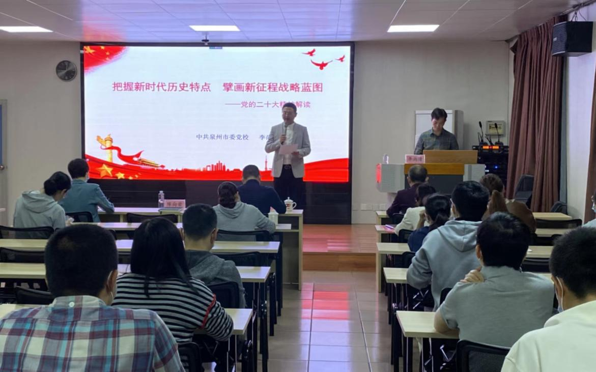 会议邀请了中共泉州市委党校副校长李尚清副教授主讲,为大家带来了一场主题为《把握新时代历史特点,擘画新征程战略蓝图——党的二十大精神解读》的辅导报告。