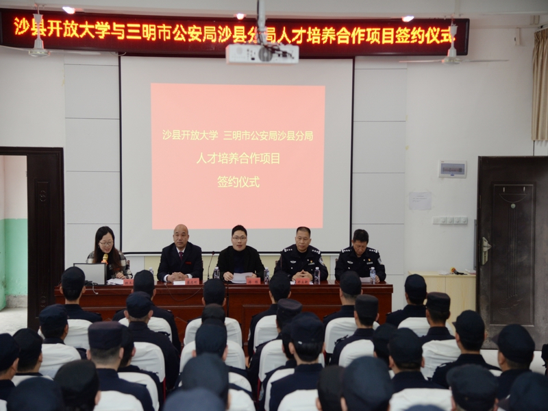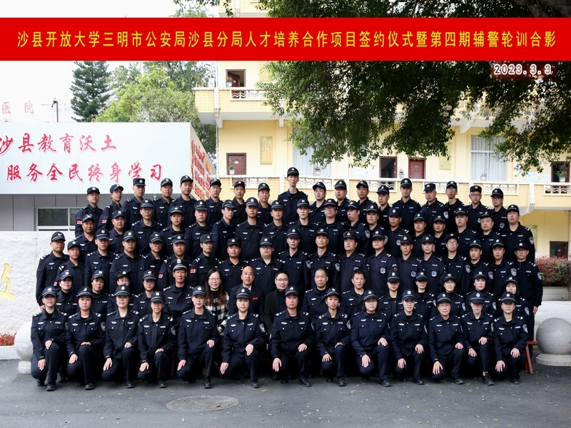 沙县开放大学的前身是1979年成立的福建广播电视大学沙县工作站, 2021年12月14日,学校正式更名为沙县开放大学。近年来,学校积极主动承担社会责任,全力做好教育“惠民生”、教育“精准扶贫”和教育“服务特殊群体”等工作,先后实施“一村一名大学生”和“农民工圆梦行动”计划,为助力行业人才培养作出了积极贡献。三明市公安局沙县分局领导十分重视并积极推进辅警队伍建设,鼓励辅警参加学历提升,自2022年秋季起,共有77名公安机关警务辅助人员参加了法律事务专科、法学本科专业的学历提升。
