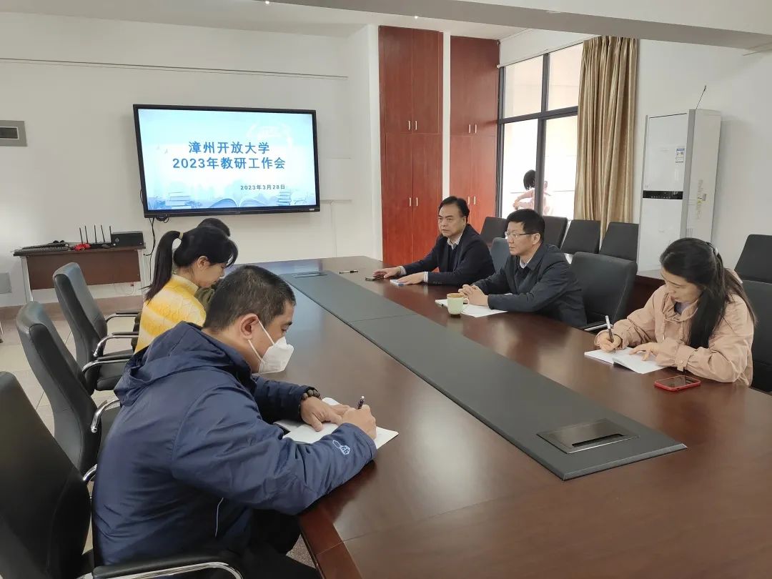 3月28日上午,漳州开放大学在修为楼508室召开2023年教研工作会。学校党委委员、副校长吕峰鹏,教务处负责人和社科系、理工系、财经系三位系主任参加会议。