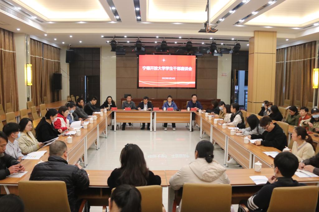 为强化思想引领,充分发挥学生干部的带头示范作用,3月24日晚上,宁德开放大学以“听心声、谋发展”为主题,组织召开学生干部座谈会,宁德开放大学党委书记、校长叶祖庚参加座谈会并讲话,座谈会特邀第十四届全国人大代表、2021年秋季宁德时代行政管理本科班学生王红梅参加,学校学生工作处、教务处、教学科研处负责人,开设面授课程班级辅导员和班长(学习委员)参加座谈会。